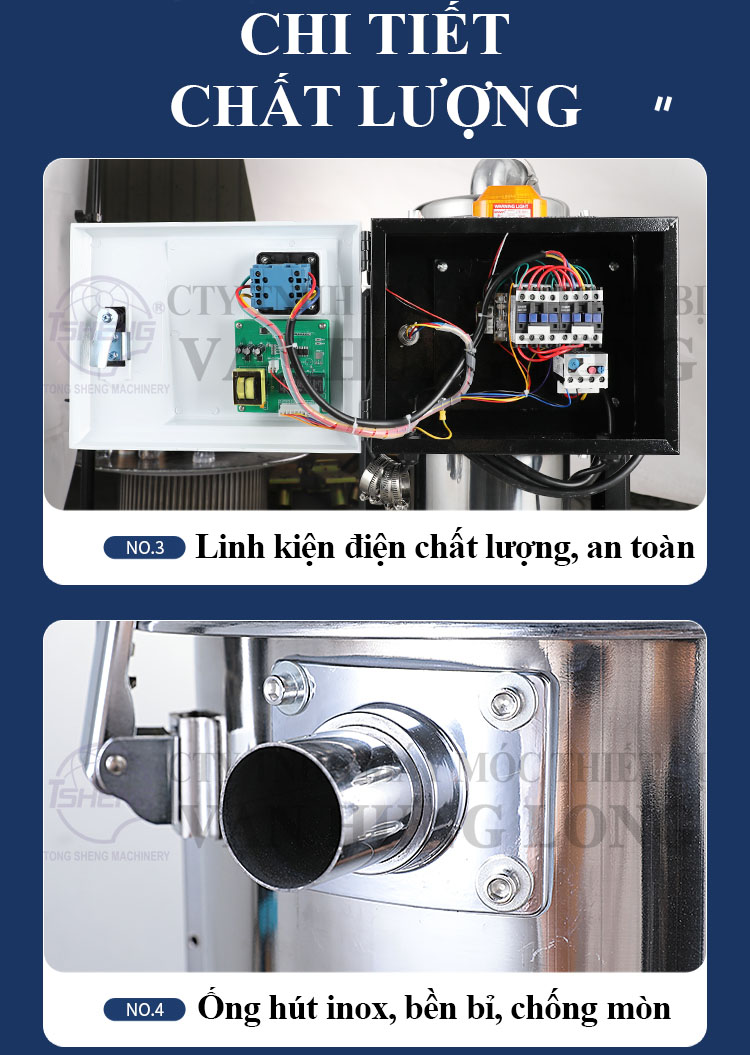 Thùng chứa (phễu chứa nhựa): nơi tạm thời chứa nhựa sau khi hút lên.